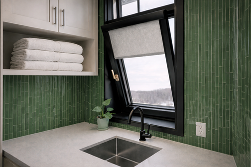 Tilt & Turn Roller Blinds use a fully encased, sash-mounted system that keeps the fabric secure as the window or door opens, tilts, and closes. The guided design holds the fabric in place at all times, maintaining clean lines, consistent coverage, and a composed look in every position.